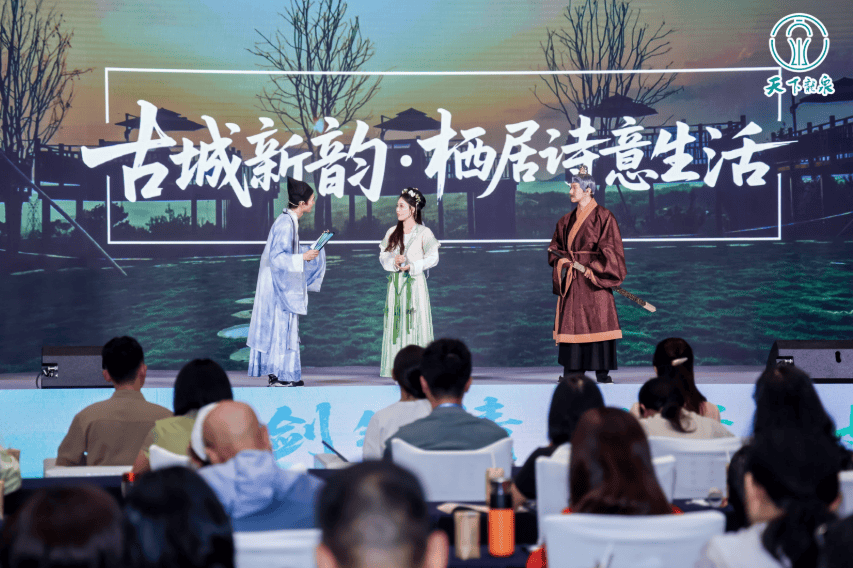 会议在行云流水的剑舞表演中拉开帷幕。推介环节一改传统模式,“千年龙泉‘新’动时刻”创意情景推介秀惊艳亮相。南宋诗人“叶绍翁”、青瓷之灵“小青”、铸剑祖师“欧冶子”三大龙泉文旅IP形象穿越登台,以轻松幽默的互动形式,将龙泉的青瓷、宝剑文化,以及山水生态与现代文旅新业态娓娓道来。这种将厚重历史文化转化为可亲、可感、可共鸣的现代叙事,生动诠释了龙泉文旅正通过创造性转化和创新性发展,让千年文脉在当代“活”起来、“潮”起来。