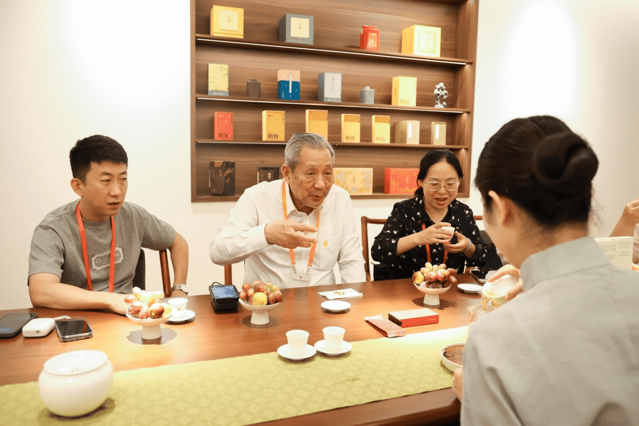 其中,以致敬朱熹《四书章句集注》为起源的儒学八目系列,古籍书型盒兼具了文化感和美感;牛魁、枞宗是熹茗武夷肉桂、水仙的经典代表,也是武夷古法炭焙工艺的集大成,充分表现出岩茶香、清、甘、活的滋味特点,别具一格的产品和侍茶师们饱满的笑容、专业的服务博得与会学者嘉宾们一致点赞。