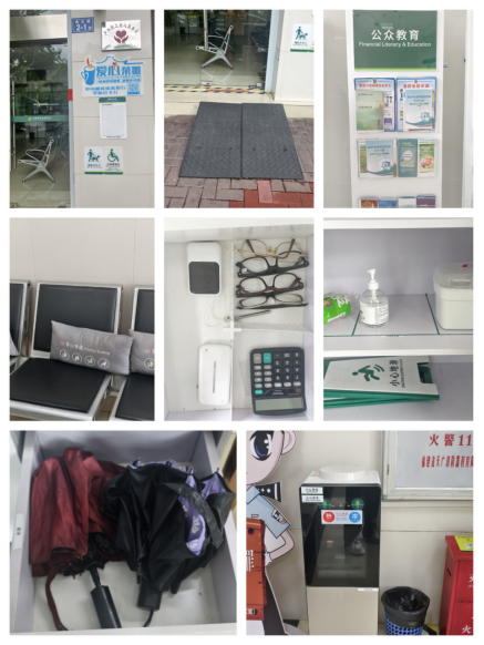 网点“邮爱驿站”配备老花镜、轮椅、应急药箱、茶水、雨具等适老化便民物品,厅外设置“爱心茶摊”醒目标识,为往来老年人及户外工作者提供休憩、饮水和应急帮助,营造温馨便利的服务环境。