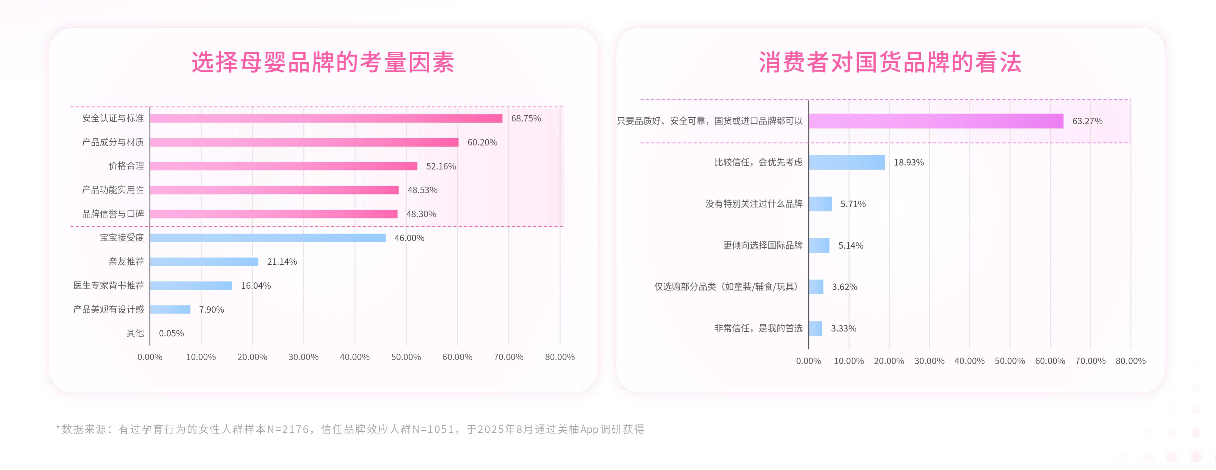 值得关注的是,超六成的消费者明确表示“只要品质好、安全可靠,国货或进口品牌都可以”,反映出国际品牌在过去所享有的“光环效应”正在逐步消退。品质与信任,而非产地标签,正成为用户决策的核心依据。